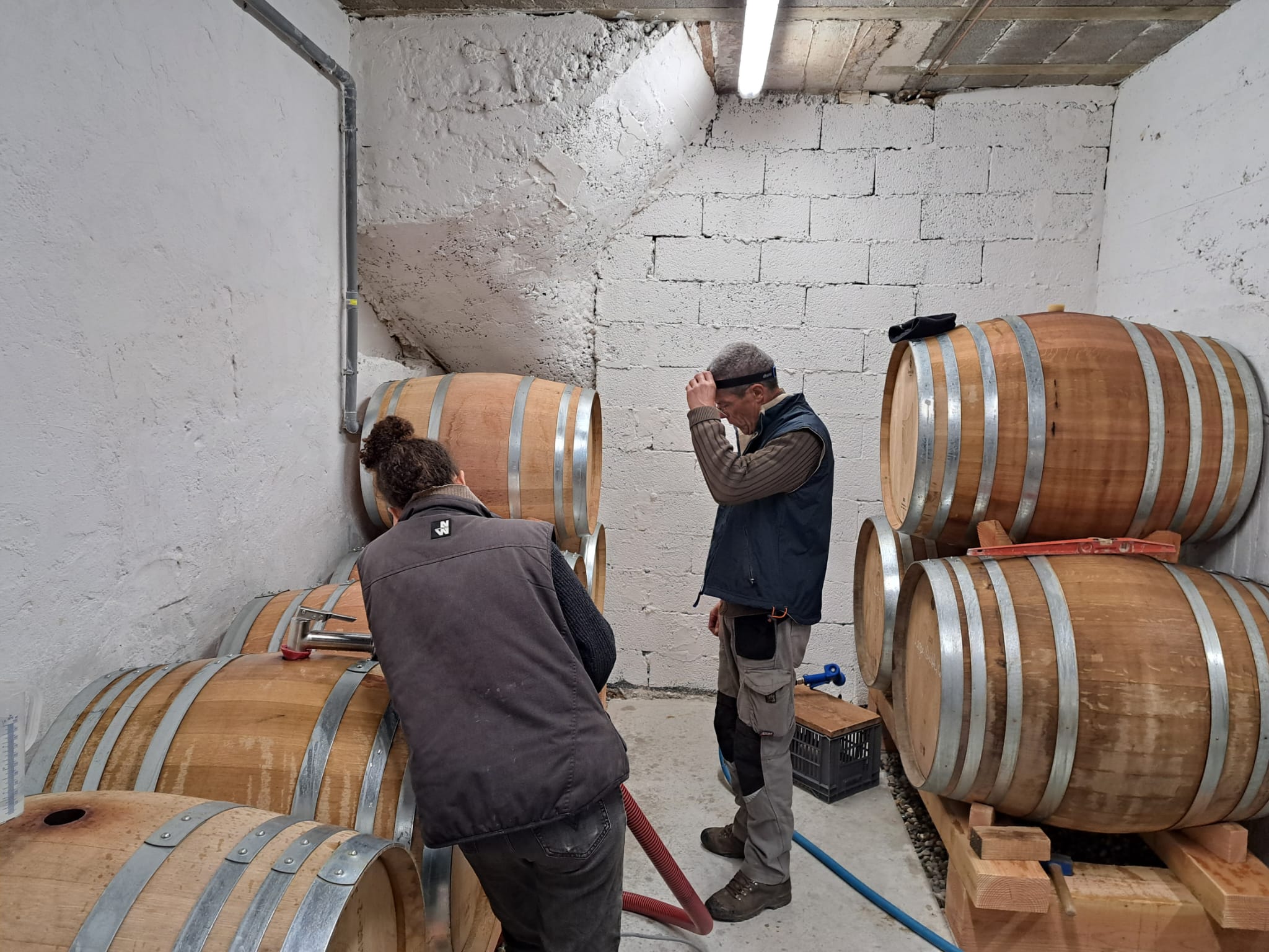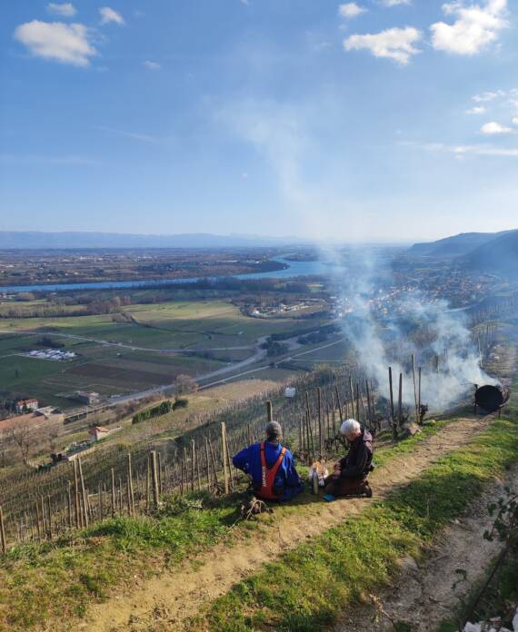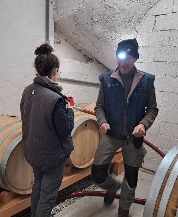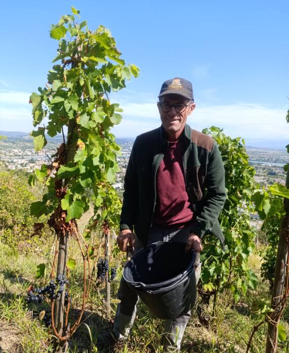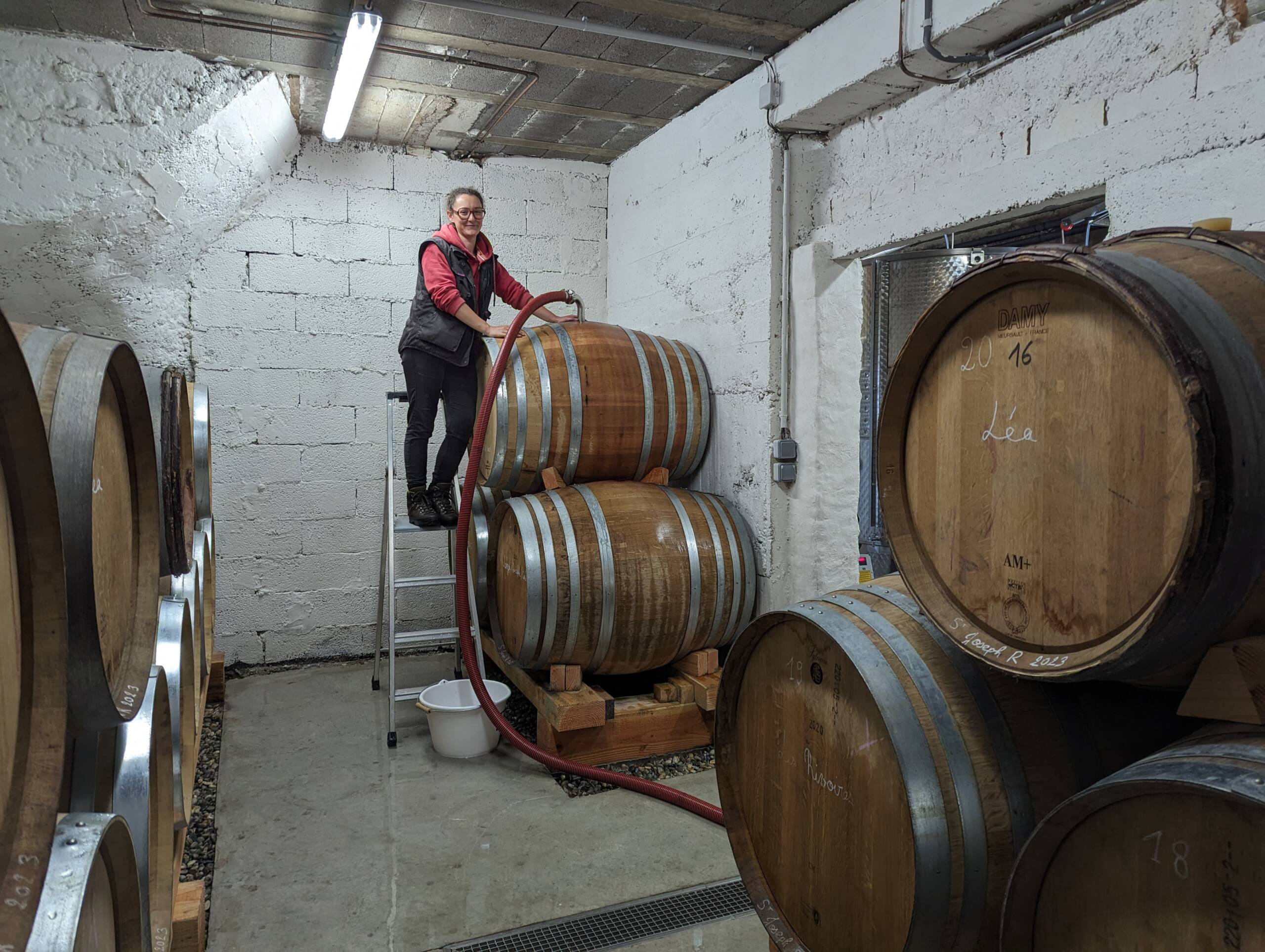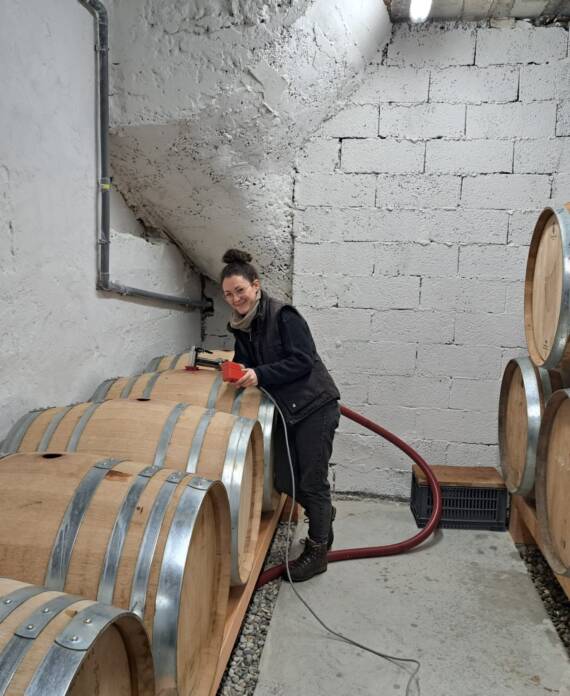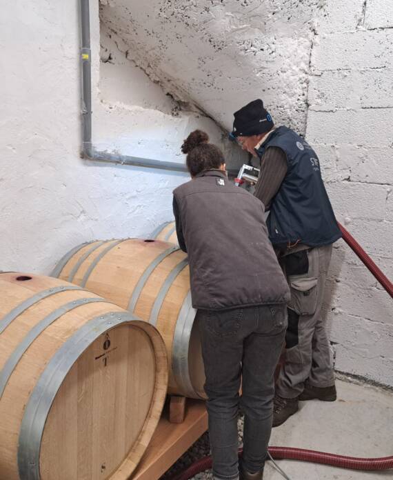 Petit à petit la culture de fruitiers diminue au profit de la vigne, jusqu’à atteindre 7 ha. C’est en 2023 qu’aura lieu la première vinification au domaine après l’installation de Camille, la dernière des trois filles. Les travaux commencent avec la rénovation d’un bâtiment existant pour installer une cave et un lieu de stockage. Puis l’achat du matériel de réception de vendange et de vinification. Aujourd’hui nous produisons 3 cuvées de vin rouge et bientôt, une cuvée d’IGP Collines Rhodaniennes en blanc rejoindra notre gamme !