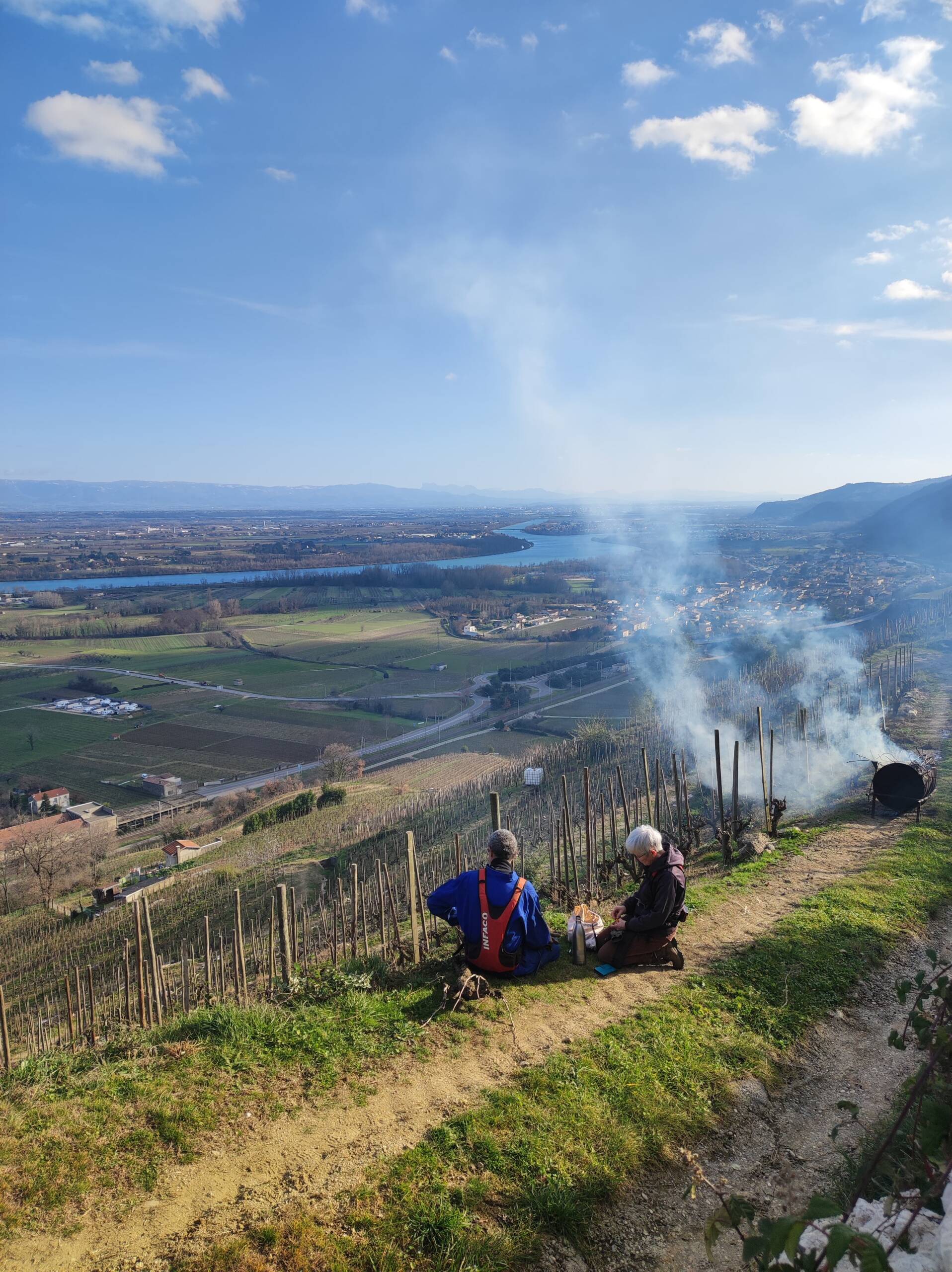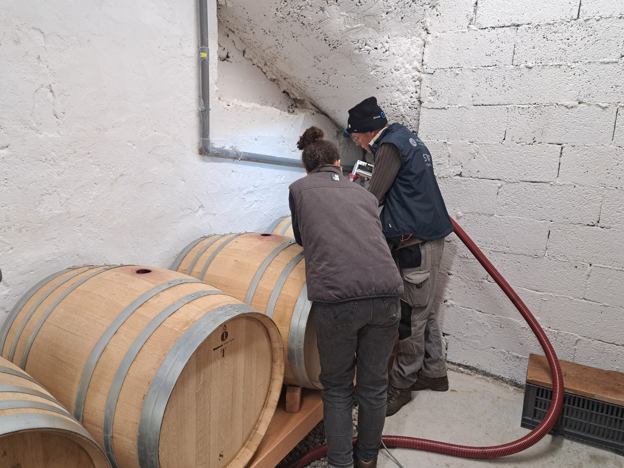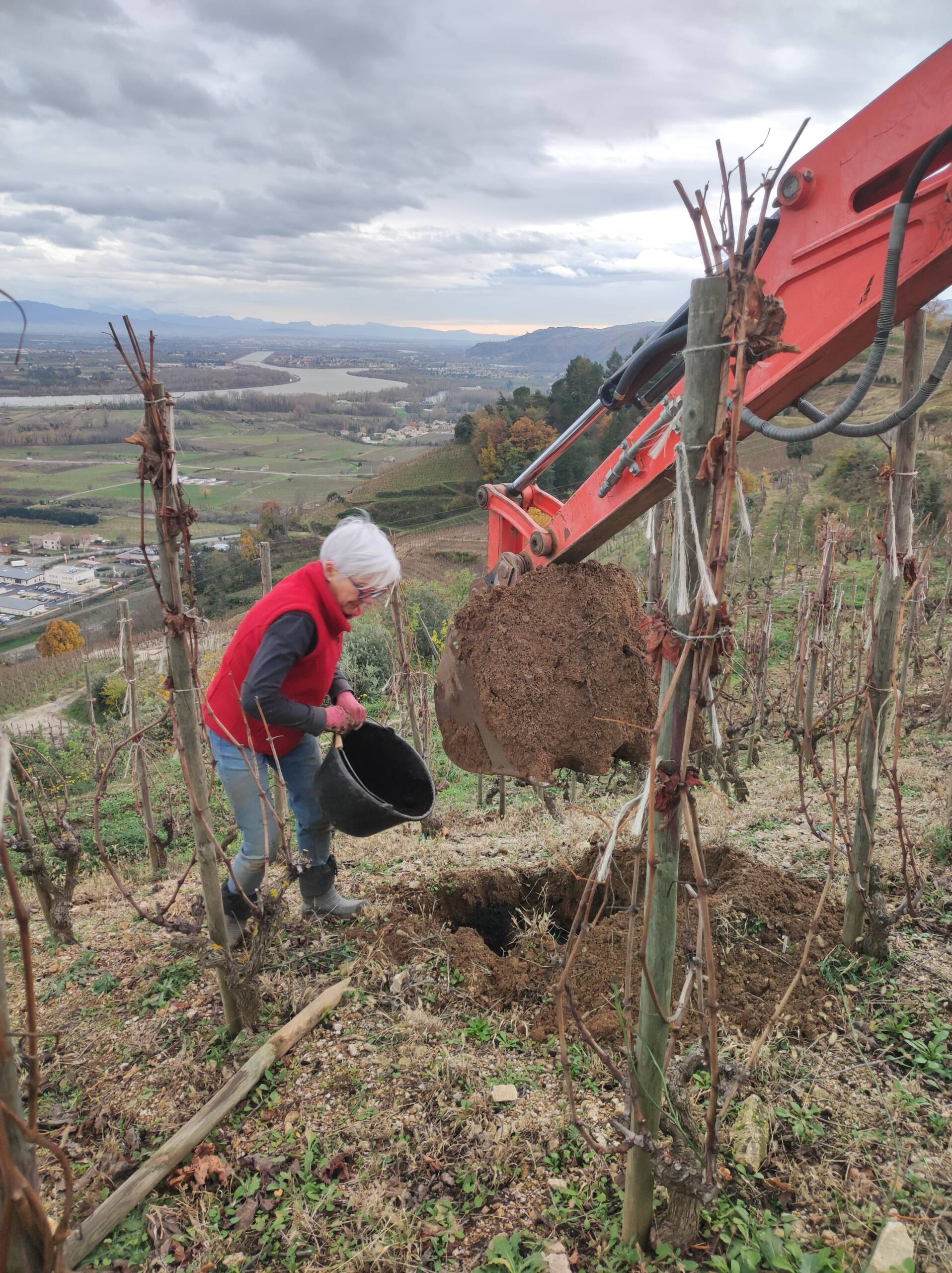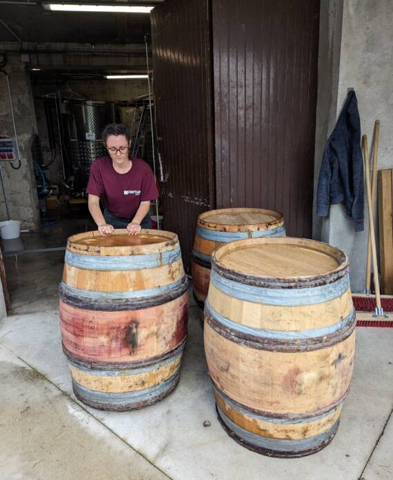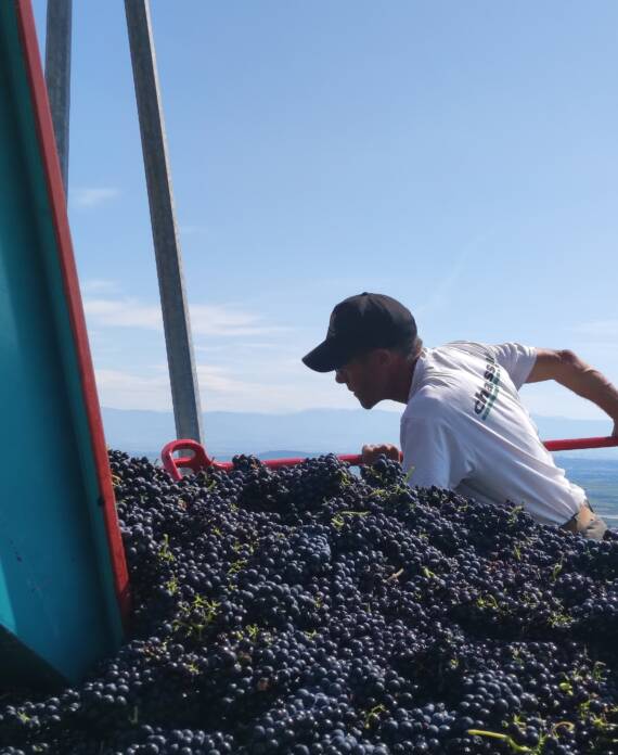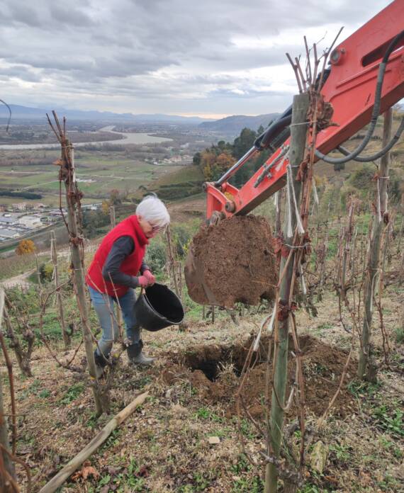 Petit à petit la culture de fruitiers diminue au profit de la vigne, jusqu’à atteindre 7 ha. C’est en 2023 qu’aura lieu la première vinification au domaine après l’installation de Camille, la dernière des trois filles. Les travaux commencent avec la rénovation d’un bâtiment existant pour installer une cave et un lieu de stockage. Puis l’achat du matériel de réception de vendange et de vinification. Aujourd’hui nous produisons 3 cuvées de vin rouge et bientôt, une cuvée d’IGP Collines Rhodaniennes en blanc rejoindra notre gamme !